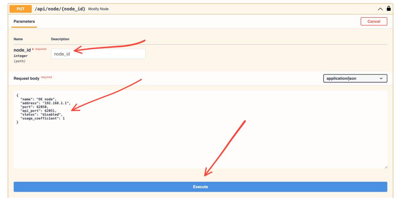 вместо node_id мы должны ввести идентификатор узла, который мы получили ранее, а в нижней части ввести параметры нашего узла вместе с желаемым коэффициентом потребления.