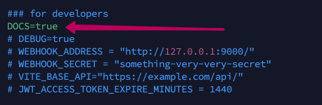 Убираем комментарий # со строчки DOCS=TRUE, сохраняем файл: