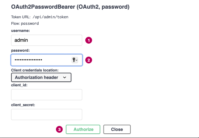 Нажимаем на кнопку авторизации и вводим свои данные администратора: