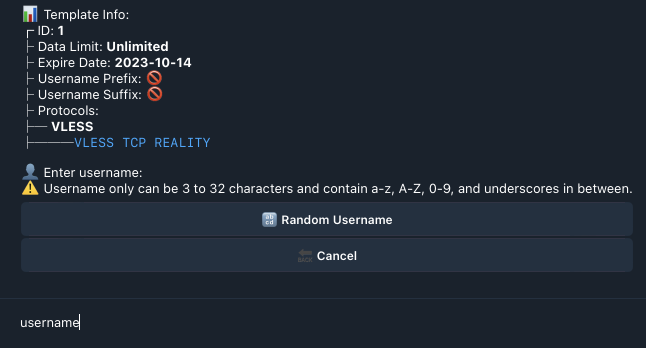 С помощью этого руководства вы можете создать пользовательские шаблоны для Telegram бота и на основе шаблонов создавать или редактировать пользователей Marzban.