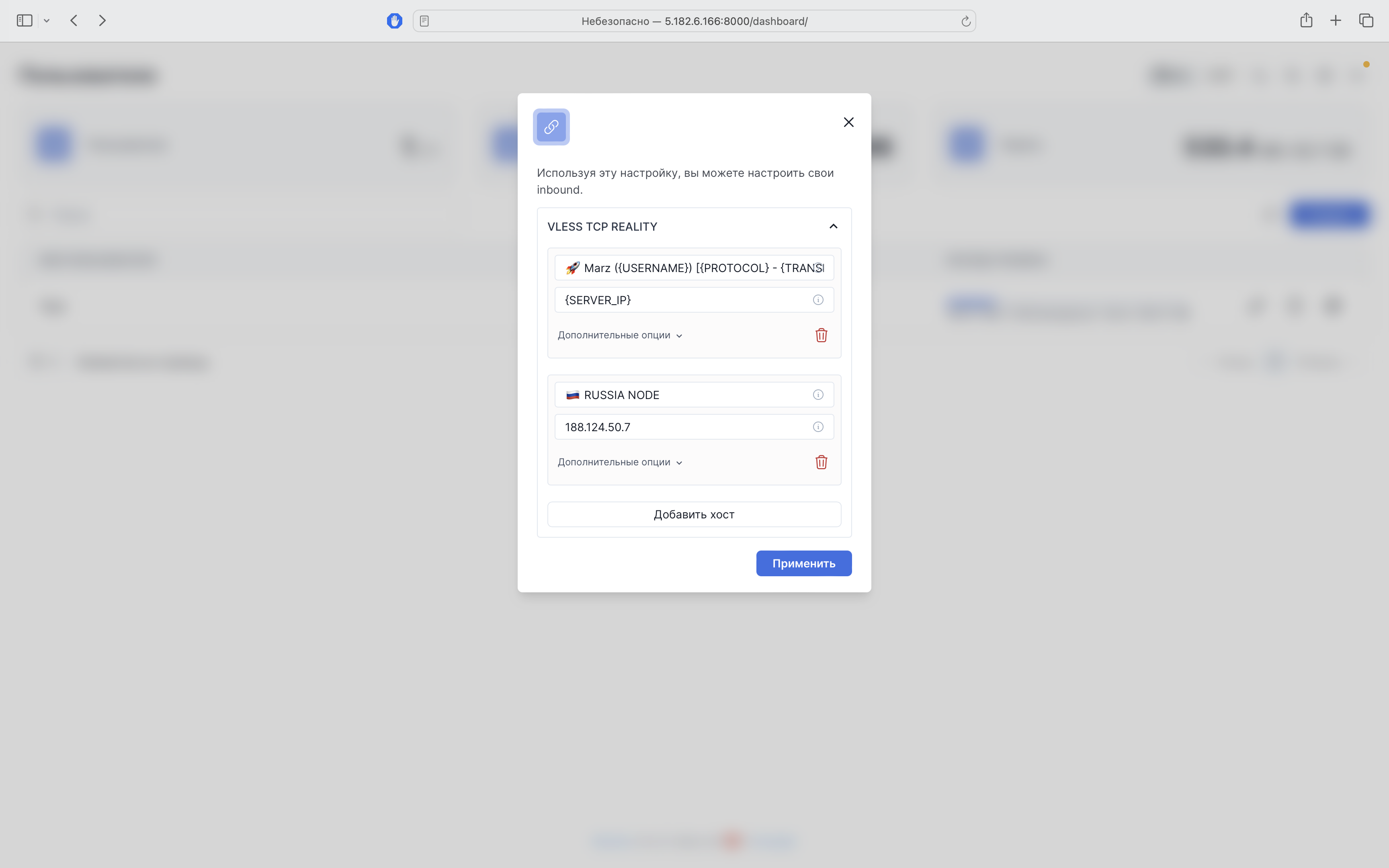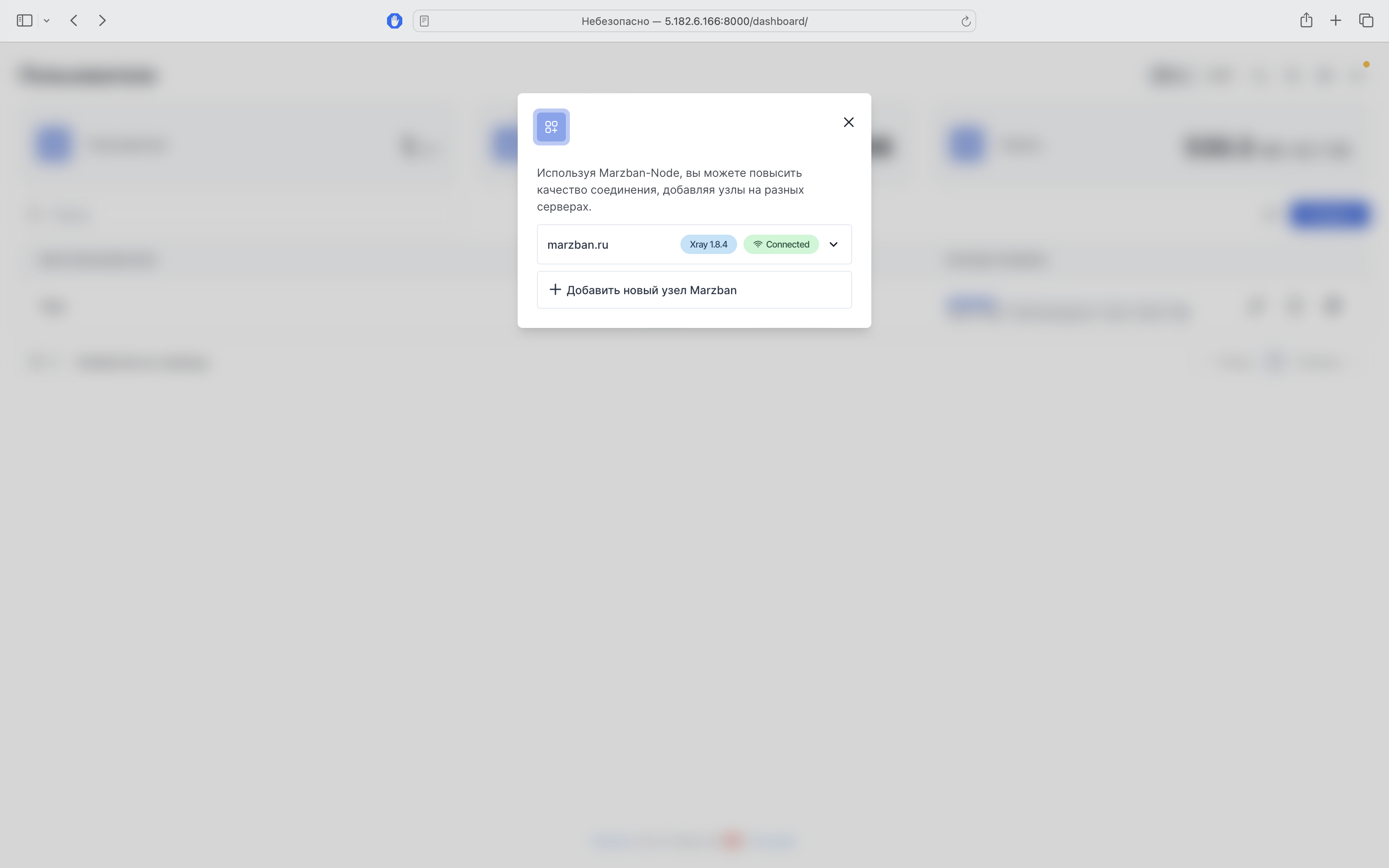 В данном разделе Вы сможете добавлять/удалять/изменять дополнительные узлы основной панели Marzban.